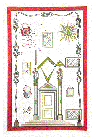 Le Tapis de Loge #3240019 Le tableau de Loge au grade d’Apprenti Auteur: A∴ N∴ Loge: Non communiqué Le Tableau de Loge répond à des codes précis suivant les rites pratiqués. Beaucoup d’ateliers ont leur propre tableau. Sa mise en place est rituélique. On l’installe (le crée) à l’ouverture des travaux, et on le désinstalle (le défait) à la fermeture. Ce tableau symbolise le Temple qui fut élevé à Jérusalem par le roi Salomon. Il faut savoir que primitivement, tout local où se réunissaient les Frères maçons pouvait être transformé en Temple. Il suffisait de tracer à la craie, sur le sol, le « Tableau » symbolique du degré auquel l’Atelier ou la Loge travaillait. On effaçait ce « Tableau » après chaque tenue. Aujourd’hui on se sert d’une toile peinte qu’on déroule lors de nos travaux. De nos jours, le Temple où se réunissent les maçons reproduit tous les symboles de ce « Tableau » placé au milieu de la Loge. Il est l’emblème de base en franc-maçonnerie. A chaque grade correspond un tableau de loge, dont celui de l’apprenti que nous étudierons. Ce tableau est composé des décors que nous essayerons d’interpréter dans la planche qui suit. Les décorsI. Le maillet et le ciseauCette paire d’outils impose à la pierre la volonté de l’ouvrier. D’une main, il frappe le ciseau avec le maillet pour tailler et créer une forme a la ressemblance de celle qu’il imagine.Le maillet est donc associé à la volonté agissante. C’est pourquoi il est remis au vénérable et aux deux surveillants. Il est utilisé au cours du rituel pour annoncer l’ouverture et la fermeture des travaux, et pour demander la parole. Au cours de la cérémonie d’initiation, le vénérable pose l’épée sur l’épaule du récipiendaire puis frappe la lame de son maillet. Pour tailler la pierre, le ciseau ou le maillet seuls sont inefficaces et la complémentarité de l’actif et du passif est évidente dans le symbolisme. Symbolisme de force et d’intelligence.Un apprenti va recevoir un ciseau pour être peu à peu efficace et posséder le discernement qui lui permettra de procéder à des investigations. Le Maillet lui permettra d’utiliser son intelligence pour l’application, et son geste devient plus sûr. C’est quelque part l’apprentissage de la dialectique s’il utilise son intelligence correctement, d’autant plus que le Verbe lui est interdit. Il affine ainsi son sens de l’observation, sa logique, son raisonnement par une action persévérante et pour apprendre à utiliser ses connaissances.II. Le pavé mosaïque : Il s’agit d’un dallage bicolore représentant l’aspect d’un damier. « Pavé » vient du mot latin « pavare » qui signifie batte la terre pour l’aplanir, mettre le sol à niveau. Le sol du temple maçonnique se construit au même titre que les murs : il participe à la démarche de construction propre à l’initiation. C’est le chemin, même de l’initiation.Mosaïque parce qu’il s’agit d’une infinité de fragments disposés de façon à former des contrastes de couleurs et des dégradés d’ombre et de lumière, ce qui met en rapport ce pavé mosaïque avec les trois fenêtres visibles sur le tableau de loge. L’une de ces fenêtres a pour fonction de filtrer et polariser la lumière unique en ombre et lumière, ce qui permet de distinguer, dans la pénombre du Temple, l’Espace Sacré, espace où le temple peut être élevé.C’est un espace sacré, qui, en notre temple est délimité par les trois grands piliers. Ce III. La règle à 24 divisionsLa règle est formée par uneligne droite. Outil de mesure, divisé en vingt-quatre degrés comme la division du jour en vingt-quatre heures, la règle permet de vérifier si la construction achevée est conforme au projet. Divisible par deux et par trois, produit des quatre premiers nombres entiers, le nombre de la règle est idéal pour vérifier la justesse des proportions. Symbolise et nous enseigne la rigueur, la norme, la droiture. Nous devons mesurer le résultat de nos actions, le chemin que nous avons parcouru.IV. Compas et équerreOr l’équerre, nous le savons, est le symbole de la matière; le compas étant le symbole de l’esprit et de son pouvoir sur la matière. Le compas ouvert à 45° indique que la matière n’est pas complètement dominée, tandis que l’ouverture à 90° réalise intégralement l’équilibre entre les deux forces. Le compas devient équerre juste…Le compas est pour l’apprenti la sincérité et la confiance qu’il porte à ses compagnons et à son apprentissage. C’est aussi le respect des autres, de leur langage et de leur maîtrise. L’équerre donne la rectitude dans l’action et symbolise la justice. Dans le raisonnement, l’équerre donne de l’ordonnancement dans les idées, afin que l’édifice tienne en place. L’équerre sur le compas est la matière que ne domine pas encore l’esprit, mais aussi la droiture et la rectitude. Pour le compagnon, l’équerre étant croisée avec le compas, il y a équilibre entre la matière et l’esprit. Le compagnon n’est plus dans les ténèbres et il s’achemine vers la sincérité et le discernement. L’équerre est aussi le symbole de la science maçonnique pour le Vénérable chargé de former des Maçons parfaits, permettant de faire passer de la pierre brute à la pierre cubique. V. Fil à plombC’est un instrument formé d’une masse de plomb fixé à un fil et servant à donner la verticale.La direction d‘un fil à plomb indique la direction du champ de pesanteur terrestre. Toutefois, l‘expérience montre que, lorsque, pour s’arracher du niveau de notre horizontale condition humaine, on s’élève il se révèle alors un écart (ou déviation de la verticale) entre la verticale du fil à plomb et la normale que l‘on peut repérer sur un fond d‘étoiles et géodésiquement mesurer. Comme si le fil à plomb pouvait aussi nous