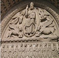 Le tétra morphe est figuré sur les tympans romans en amande avec le Christ au centre (le Christ en Gloire). Cette figuration reçoit toute sa signification que par cette présence au centre. C’est en effet Lui qui les anime, depuis la vie animale jusqu’à la vie angélique.