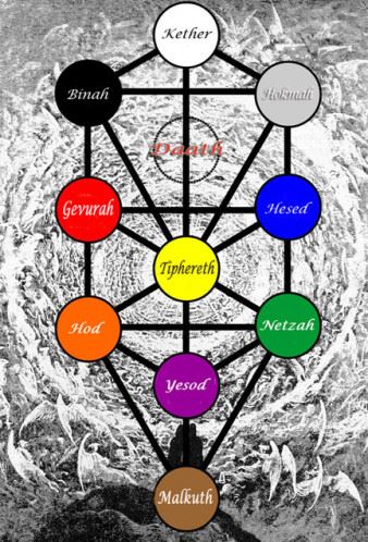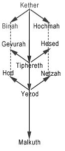 Dieu se manifeste selon dix degrés, dix lumières, dix paroles ou dix aspects divins nommés sephirots et répartis entre ces trois colonnes de l’Arbre Séfirotique de la manière suivante: